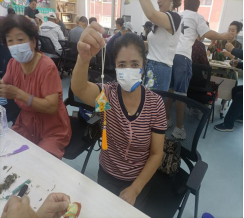 活动现场,彩色布料、皮绳、针线、流苏挂饰、配件摆放在桌子上,大家其乐融融围坐在一起,穿针引线,精心缝制,共同讨论,制作出立体饱满、精致小巧 ,散发着阵阵幽香的五彩香囊。在香囊制作完成后,现场进行游戏互动和抽奖环节,他们抽到了米、面、油、健康包、牛奶、等各种奖品。活动最后,东山办计生协为前来参加活动的每户特殊家庭都送上了一份端午礼盒,以此表示对特殊家庭的关怀和慰问。